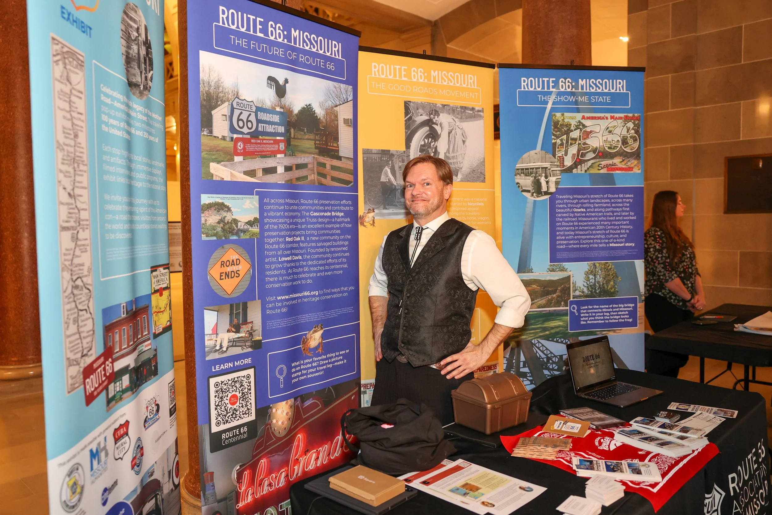 At the Missouri State Capitol, the exhibit became part of a multi-hour Missouri Humanities showcase, where legislators and members of the public engaged directly with the panels, films, and educational materials.