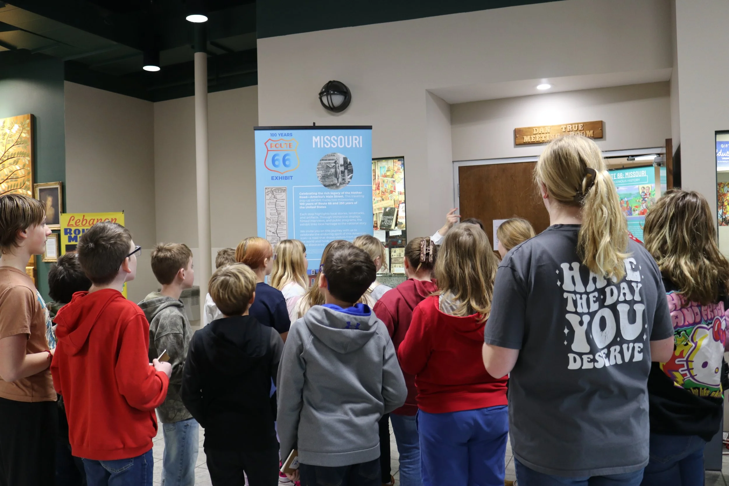As seen during its Missouri debut, the Route 66 Centennial Traveling Exhibit is designed to be experienced, not just viewed. In Lebanon, Missouri, the exhibit transformed a conference room at the Public Library into an active learning space over two days of programming, welcoming local classrooms alongside families and community members.